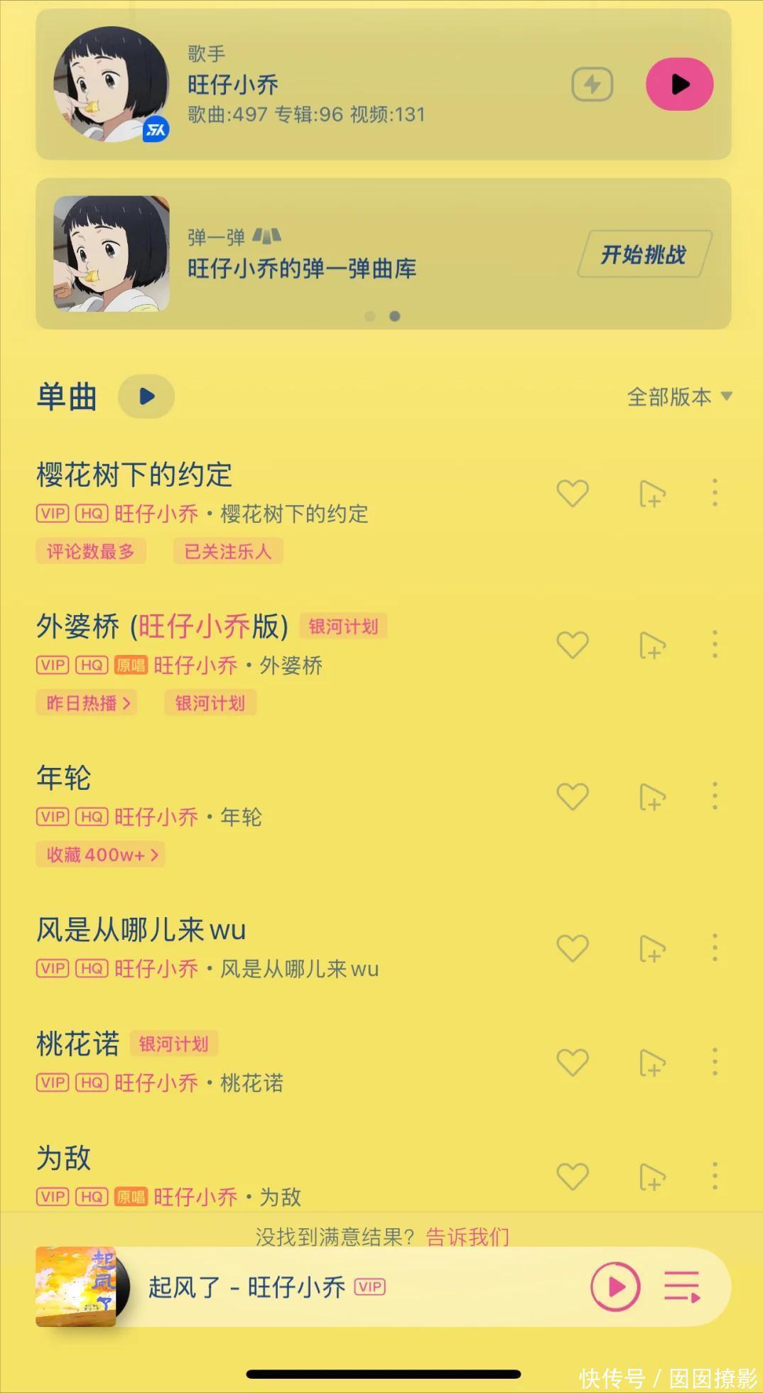 可再看旺仔小乔,她我方的原唱歌曲满打满算也就7首,代表作都是翻唱歌曲。